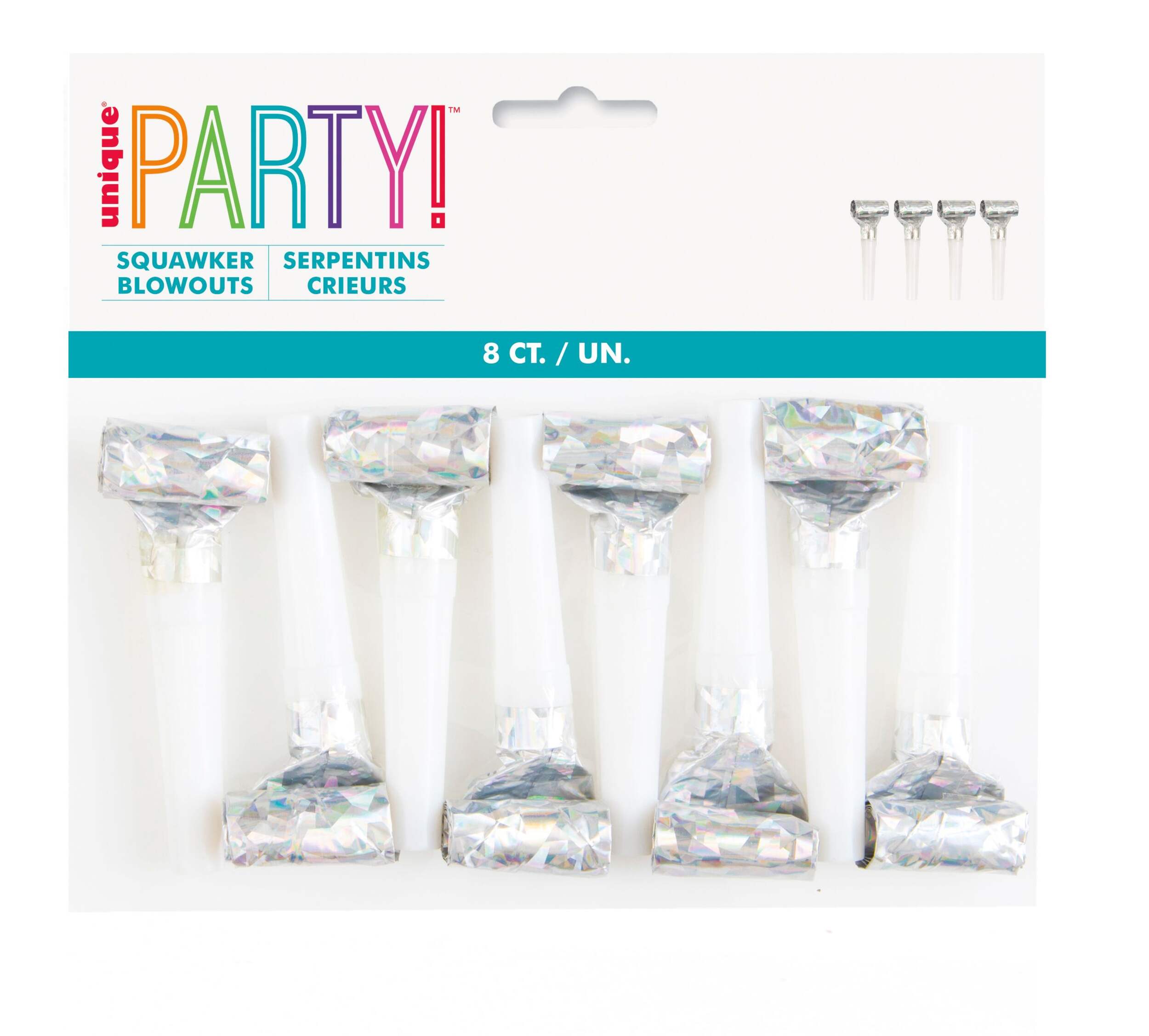 Les mirlitons métalliques dorés et argentés ajouteront un éclat parfait à votre prochaine célébration. Les mirlitons métalliques dorés et argentés attrayants sont offerts avec embouts buccaux blancs pour garder les choses simples et élégantes. Aucune célébration n'est complète sans souffler les bougies avec style, alors les huit mirlitons de cet ensemble vous assurent que tout le monde a un tube scintillant pour faire un voeu.