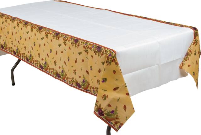 Nappe en papier dotée de bordures imprimées de la récolte automnale aux teintes chaudes, idéale pour les rassemblements de l'Action de grâce