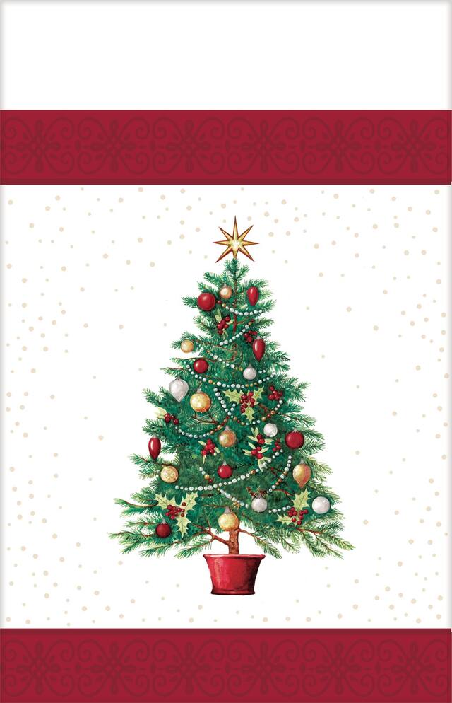 Nappe en plastique dotée d'un centre blanc et de bordures de sapin de Noël décorées