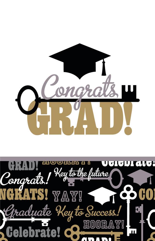 Ces produits similaires présentés ci-dessous pourraient vous intéresser.Nappes en plastique La clé du succès ornées de l'inscription « Congrats Grad! », d'une clé au centre et d'une toque de diplômé