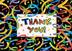 Carré blanc avec le message « Thank You! » au couleur de l'arc-en-ciel et avec des étoiles multicolores