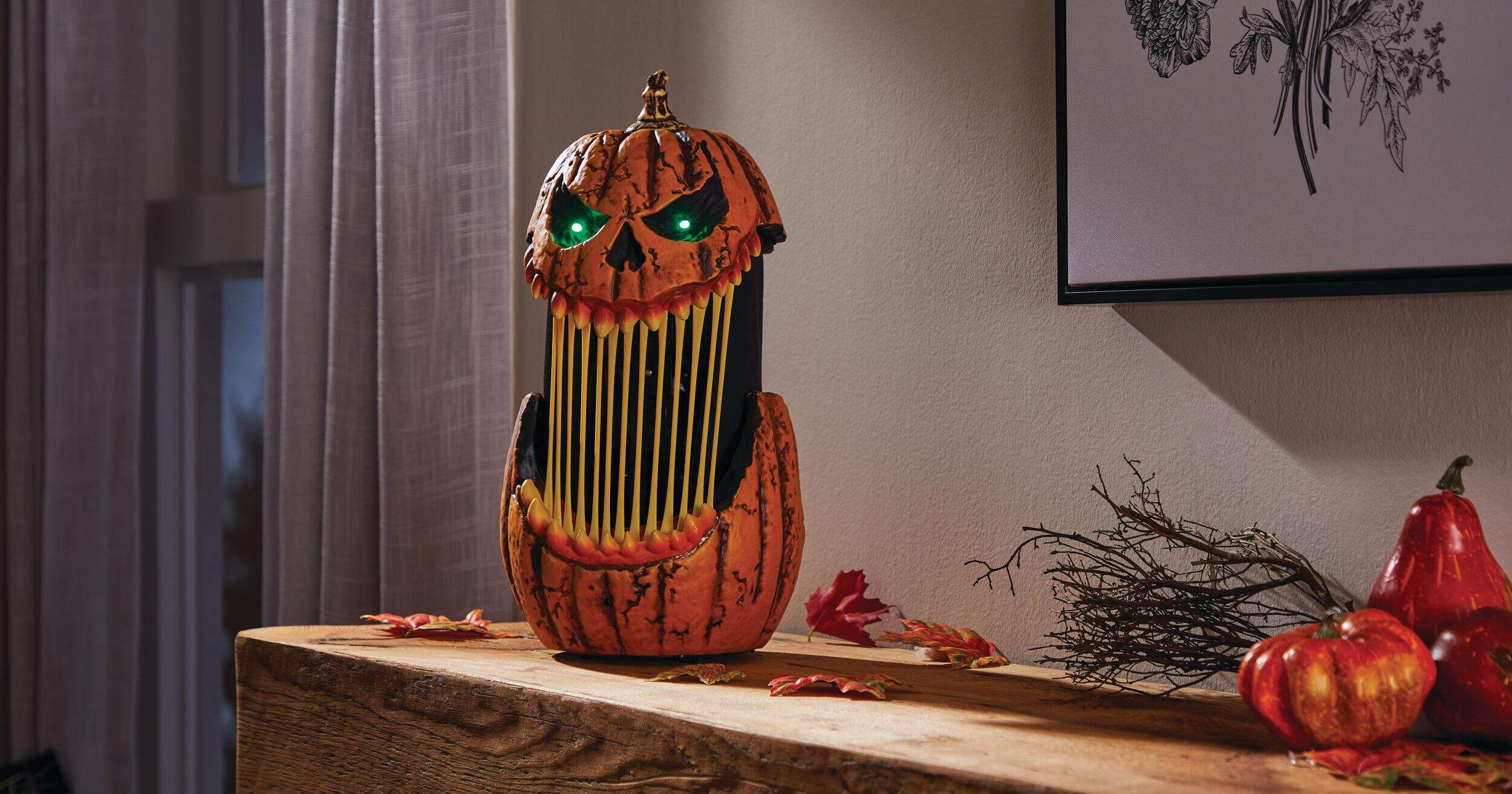 Personnage citrouille en relief qui est actionné par des mouvements ou des sons et est doté d'une fonction d'essai