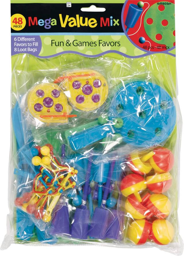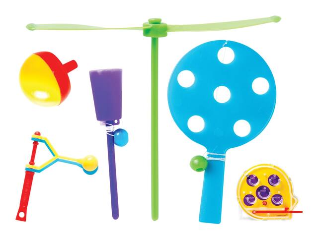 About half of these are near useless... other half were of some entertainment and value to those kids receiving them. The clackers on the stick didn't stay on at all, right from the start, or were too loose/tight to even make them work well. The little round "pinball" game had many of the small bearings fall out/get lost within minutes of using them. Paddle toy is a bit small/frustrating for some to use. Other toys had a reasonable level of entertainment success for the kids - Others were pretty disappointing.