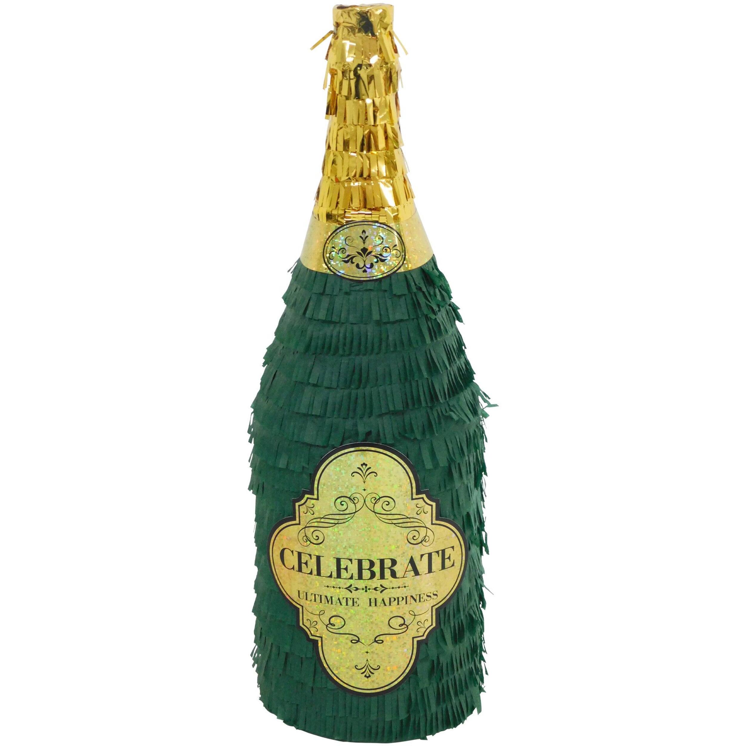 Remplissez la pinata en forme de bouteille de champagne avec des cadeaux-surprises et des bonbons