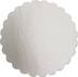 Planche à gâteau ronde argentée de 14 po dotée d'une base en carton avec un fini argenté en aluminium et un rebord festonné
