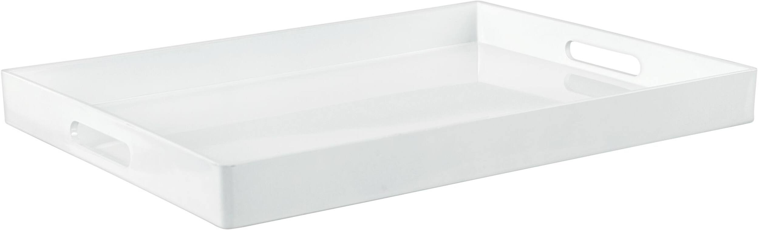 Ces produits similaires présentés ci-dessous pourraient vous intéresser.Plateau de service rectangulaire blanc en plastique opaque doté de deux poignées pour faciliter le transport et d'un rebord surélevé pour empêcher les articles de tomber