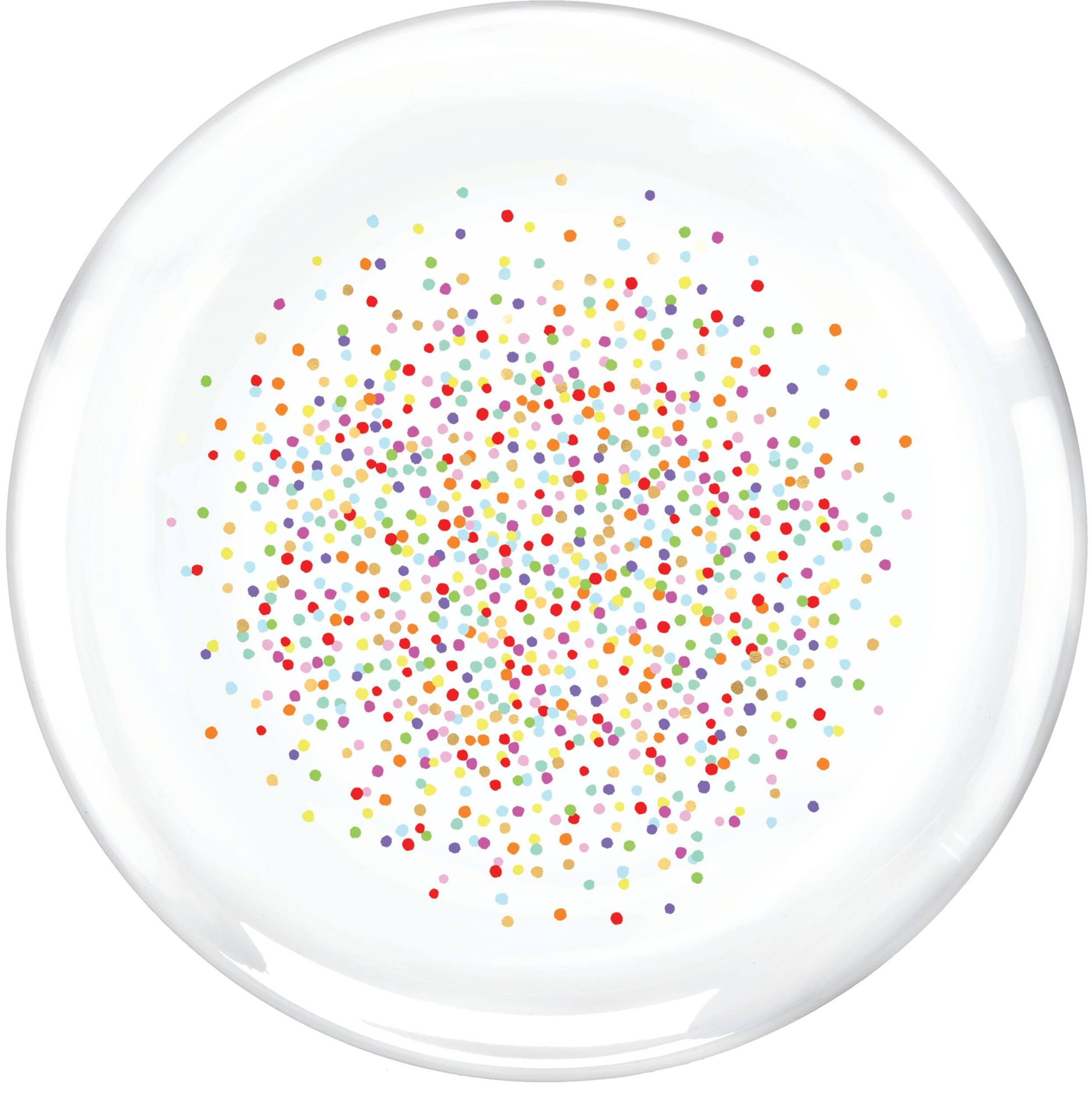 • Mettez de la couleur grâce à notre plateau rond confettis arc-en-ciel