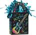 Boîte en papier cartonné en forme de fourre-tout, avec un poids noir enveloppé de papier aluminium à l'intérieur et des poignées où vous pouvez attacher vos rubans de ballons