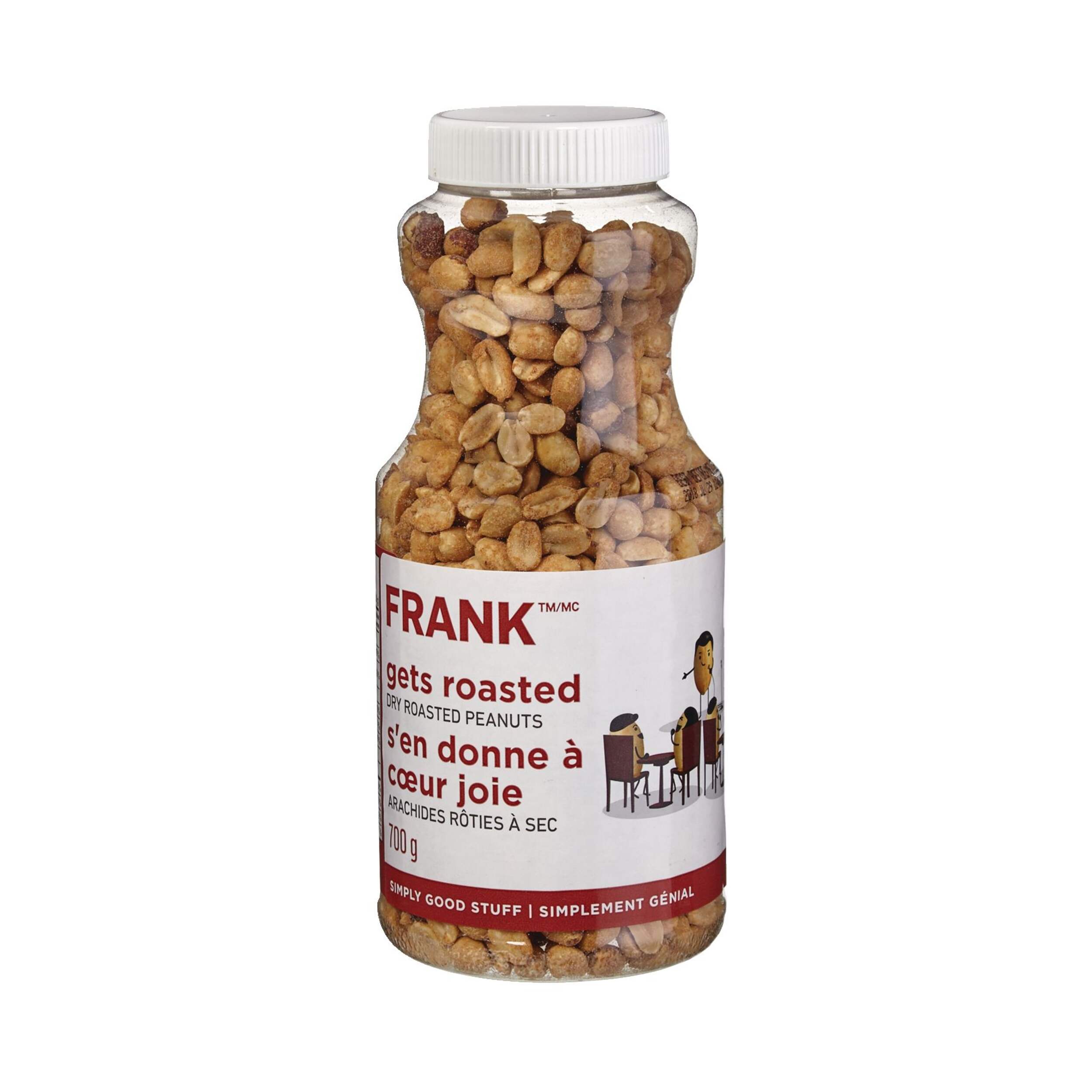 Le pot de arachides grillées à sec FRANK, 700 g, est idéal pour les collations sans pépins pendant que vous regardez Netflix ou que vous partagez lors de votre prochaine soirée de jeu. Les arachides sont grillées à la perfection, puis assaisonnées avec un soupçon de sel, ce qui vous donne une grande saveur dans un petit format. Il suffit de dévisser le couvercle et de verser une poignée dans un bol pour une collation facile à emporter.