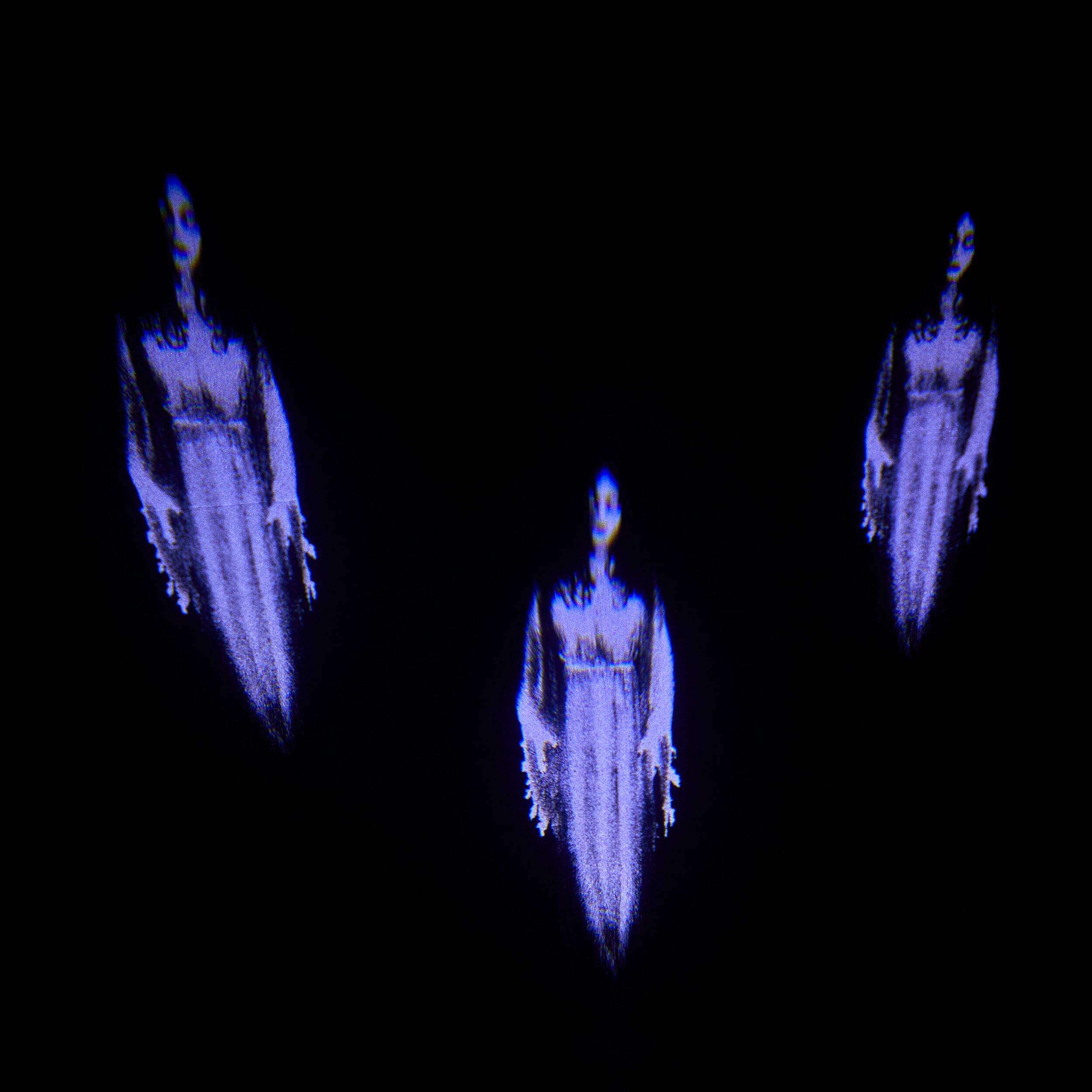 Projection de fantôme avec lumière clignotante à DEL Gemmy sur trépied qui projette une étrange figure fantomatique qui clignote de façon aléatoire