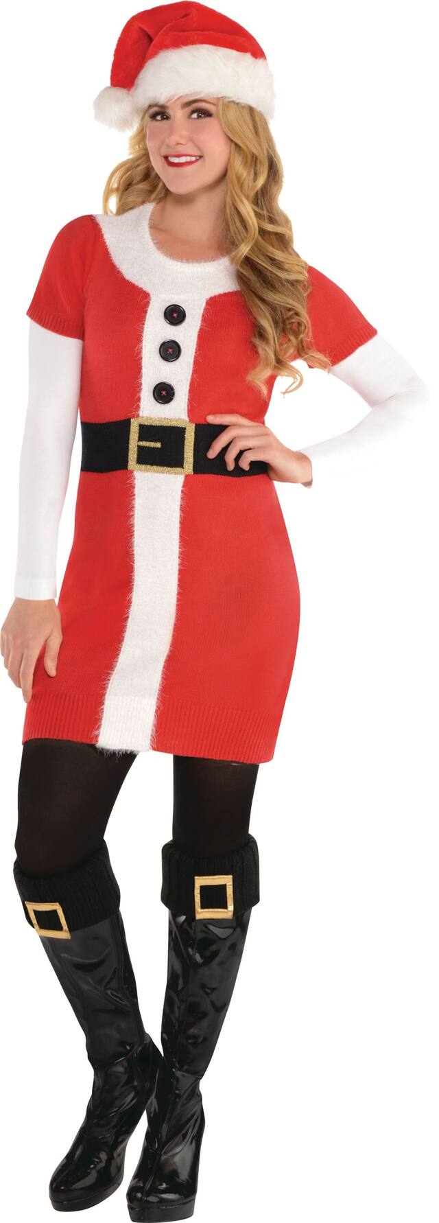 Ces produits similaires présentés ci-dessous pourraient vous intéresser.Robe-chandail du père Noël pour adulte est une robe courte rouge rappelant le costume de père Noël avec une ceinture et un motif de boutons