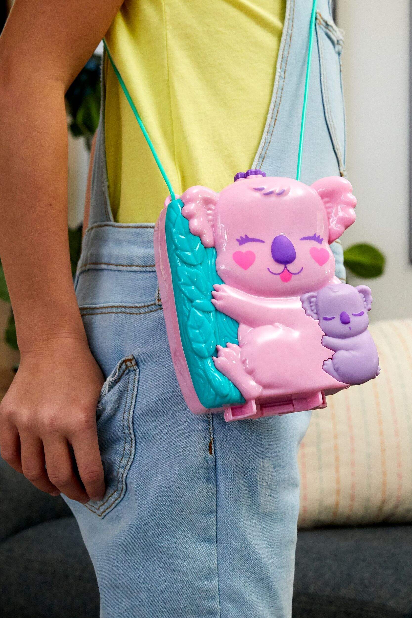 Grâce à la technologie Polly StickMC, les micro-poupées peuvent coller n'importe où sur le sac à main compact