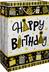 Inscription « Happy Birthday » au centre entourée de pois et d'étoiles avec des bannières en haut et en bas