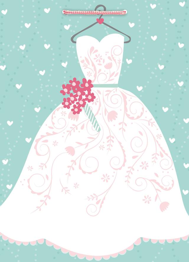 Ces produits similaires présentés ci-dessous pourraient vous intéresser.Sac-cadeau robe de mariée grand format en papier bleu sarcelle orné d'une robe de mariée blanche avec un motif floral rose suspendue à un cintre