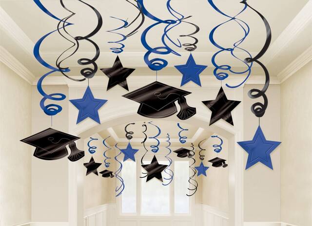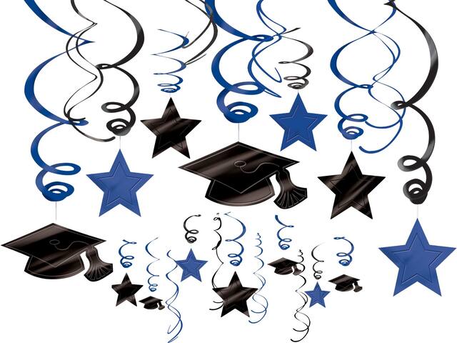 Certains serpentins ont des découpes de chapeaux de diplômé ou des étoiles en plastique