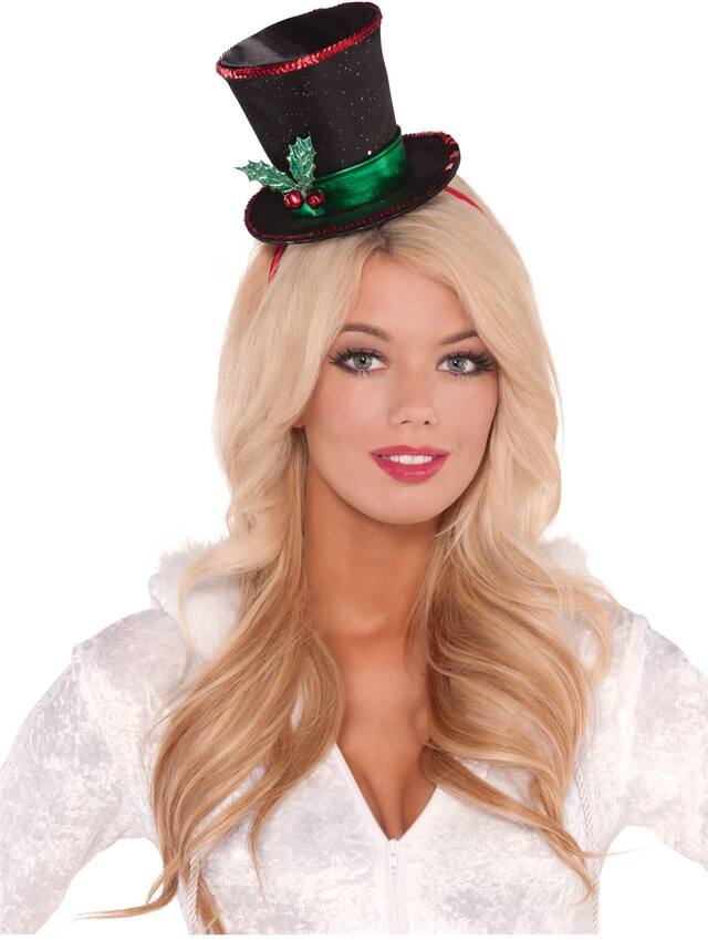 Ces produits similaires présentés ci-dessous pourraient vous intéresser.Serre-tête de Noël, diva, doté d'un mini chapeau haut-de-forme en tissu noir avec un imprimé d'étoiles scintillantes