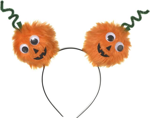 Bandeau avec deux pompons oranges attachés, conçus pour ressembler à des citrouilles