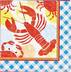 • Petites serviettes à boisson Festival des fruits de mer en papier avec des crabes, des homards, des citrons, des palourdes et des pommes de terre