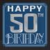 Serviettes en papier noir et bleu dotées d'un titre « Happy 50th Birthday » en argent métallique et blanc