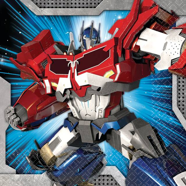 Idéales pour une fête des Transformers, ces serviettes en papier à 2 épaisseurs mettent en vedette Optimus Prime et Bumblebee prêts pour l'action