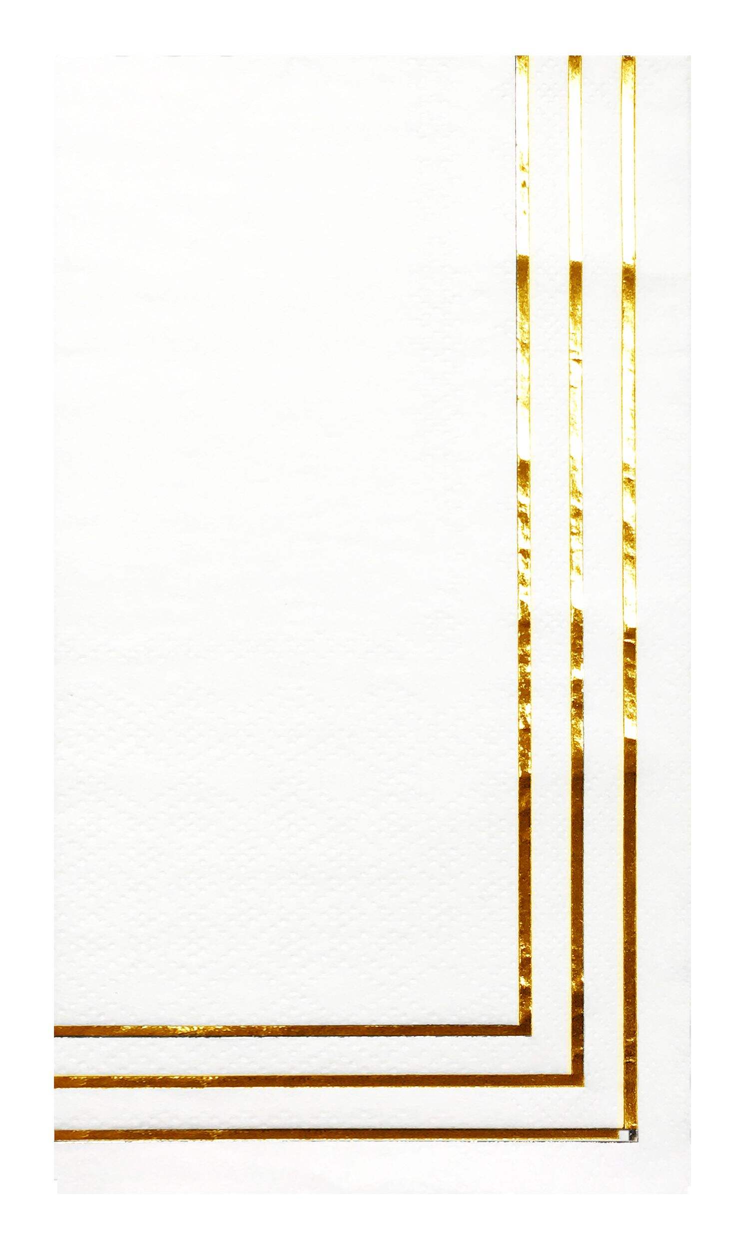 Serviettes à cocktails 3 épaisseurs Sophistiplate Classic dotées d’un fond blanc avec une rayure dorée