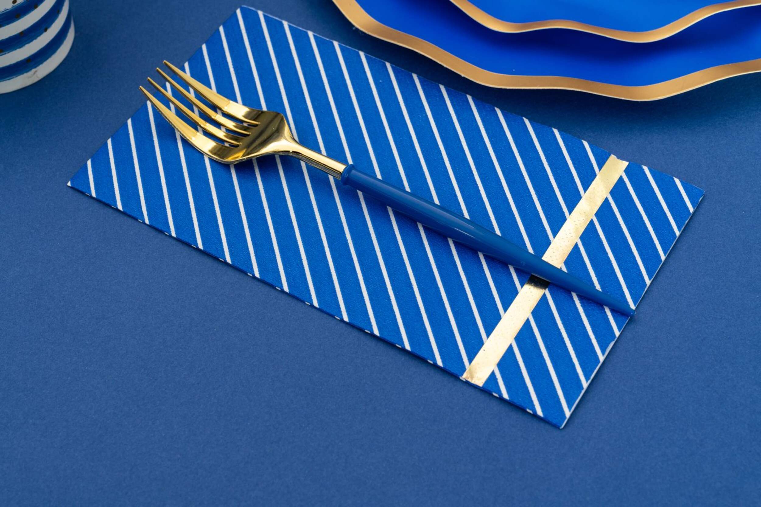 Serviettes d’invités 3 épaisseurs Sophistiplate Solid Blue de couleur bleu cobalt avec bordure dorée