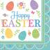 Doté d'une bordure sarcelle ornée de fleurs et du message « Happy Easter » avec des oeufs de Pâques colorés