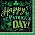 Petites serviettes de table en papier dotées d'un côté du titre vert « Happy St Patrick's Day! » entouré de trèfles et de motifs verts sur fond noir