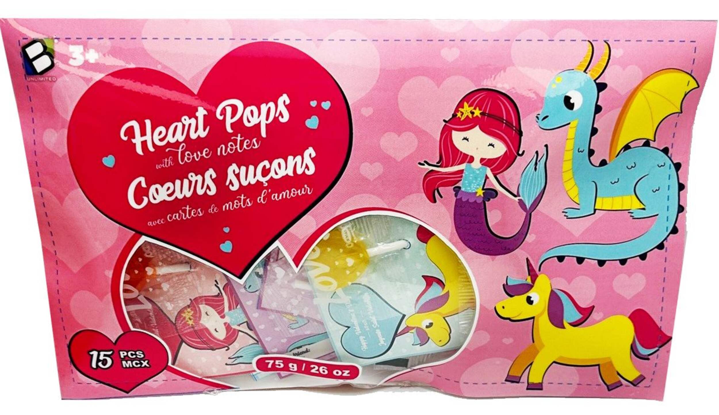 Sucettes à saveur de fruits en forme de coeur avec cartes pour lettres d'amour