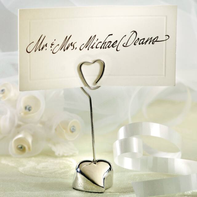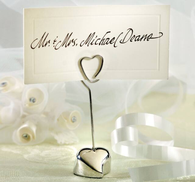 Ces produits similaires présentés ci-dessous pourraient vous intéresser.Support pour marque-place en forme de coeur, argenté, est doté d'une base en forme de coeur et d'un coeur en fil métallique en spirale qui tient le marque-place