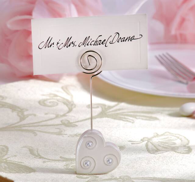 Doté d'un fil qui s'étend au-dessus du coeur avec une spirale pour tenir un marque-place ou une photo