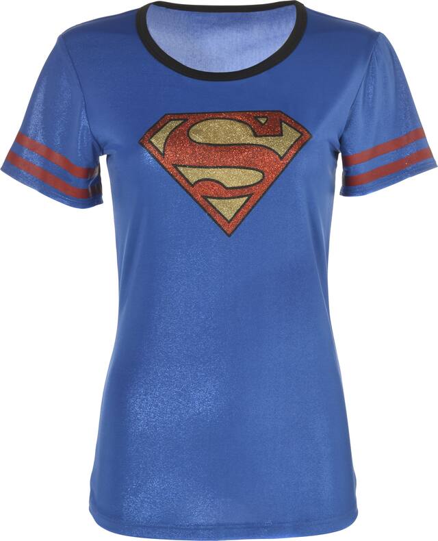 Couleur bleue avec deux rayures rouges sur les manches et un logo scintillant « Supergirl » sur la poitrine