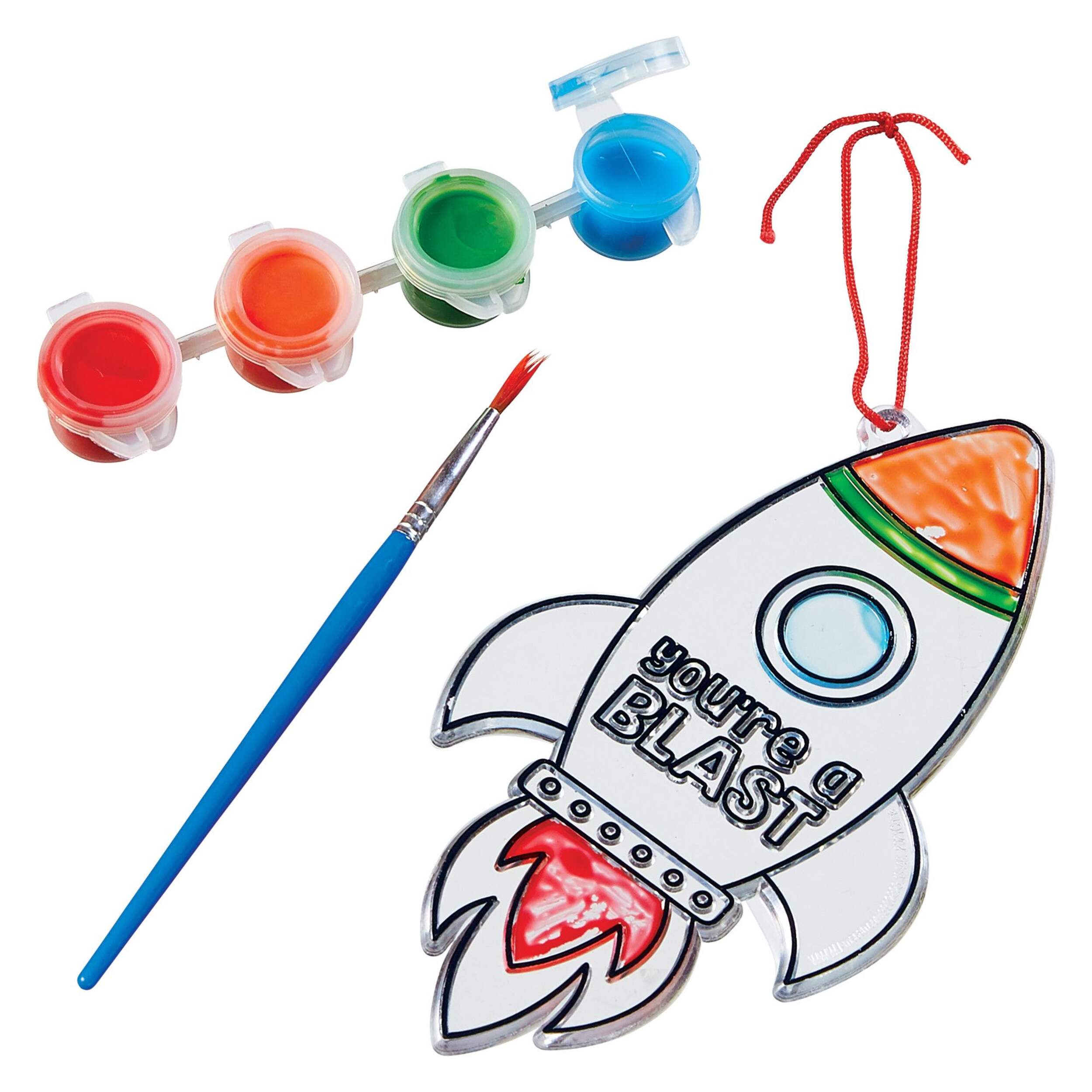 En forme de fusée avec les mots You're a Blast sur le côté, ce capteur de soleil comprend 4 pots de peinture, 1 pinceau et 1 cordon pour accrocher votre création à la fenêtre pour capter la lumière