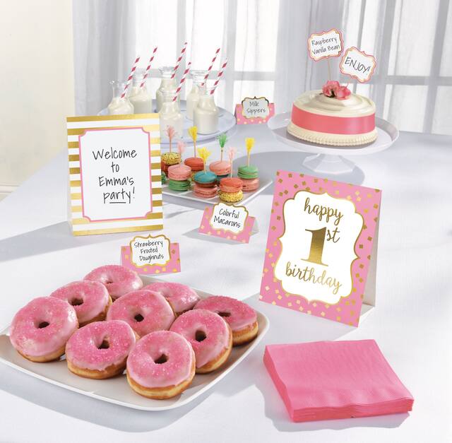 Utilisez cette trousse de décoration de buffet pour y indiquer les aliments, les numéros de table et y écrire de jolis messages pour vos invités lors de la fête de 1er anniversaire de votre enfant