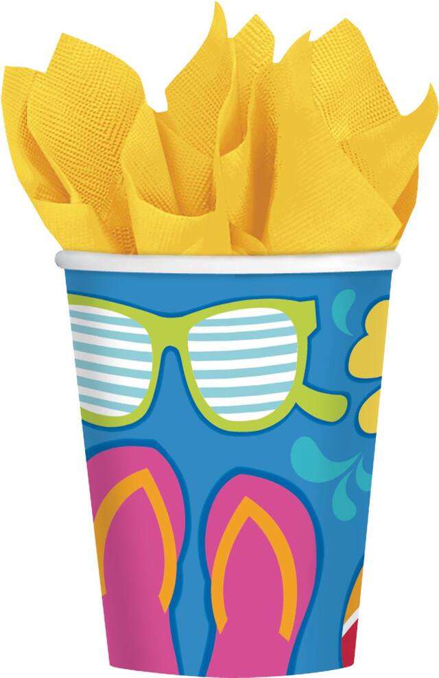 • Complétez votre vaisselle estivale avec des verres en papier colorés